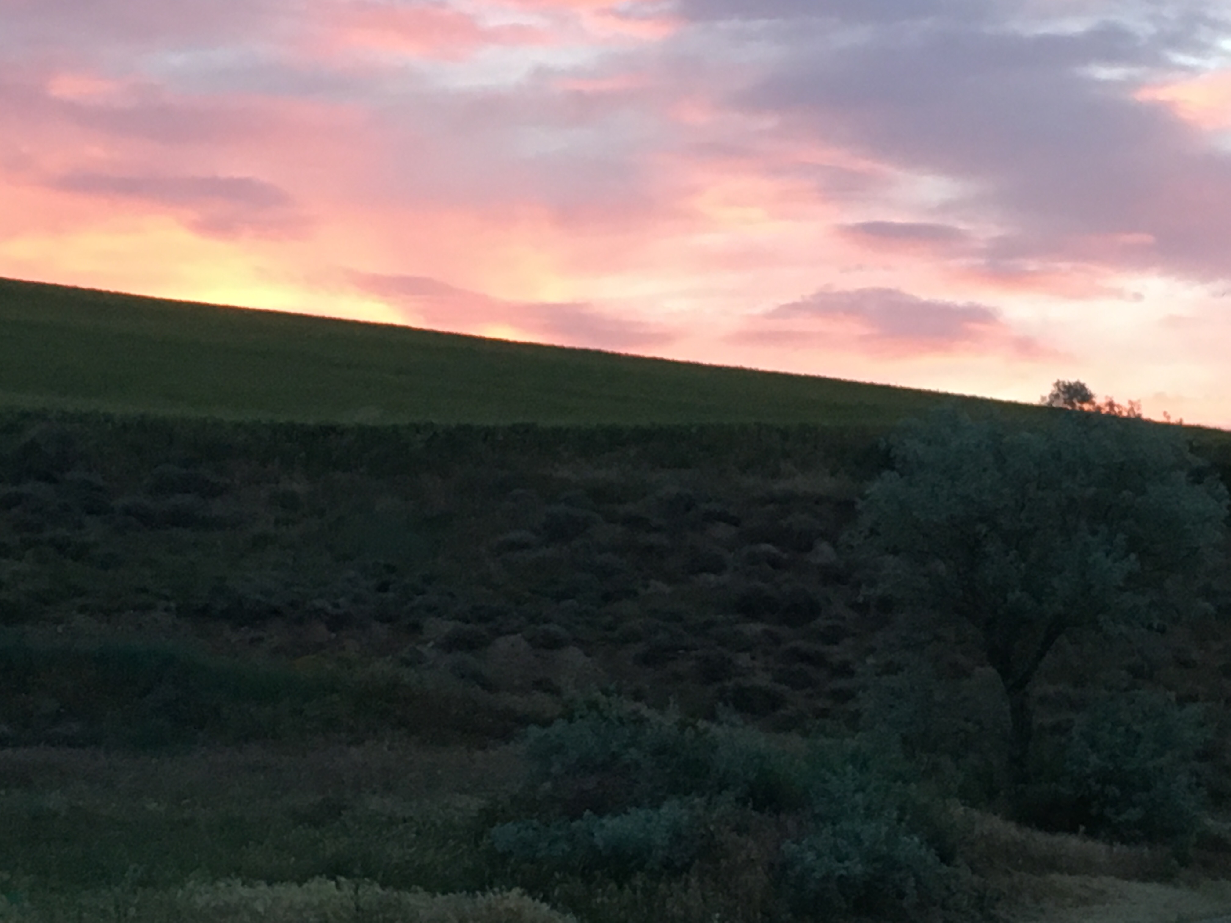 The walk from Los Arcos to Logroño was beautiful, long but beautiful. We started at 5 am hoping to beat the heat of the day and because we had 18 miles to walk. We started out with head torches in the darkness looking for the shells and yellow arrows. We walked in quiet until the sun rose. And watched the beauty of God’s creation come alive.