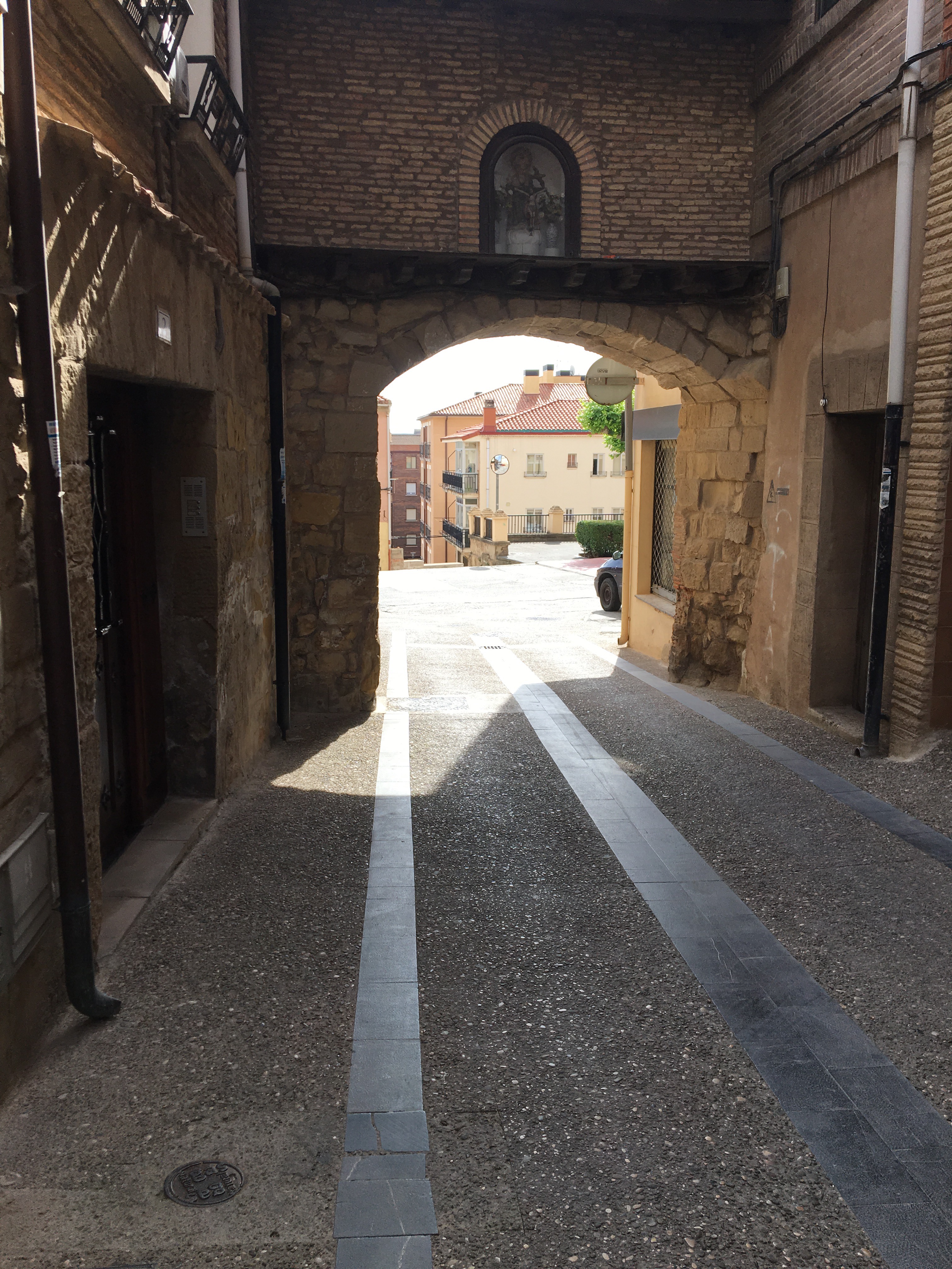 We could see Logroño from at least 10 miles away but it seemed to take forever to get to it. When we reached Viana it seemed to be a ghost town. There was a nice shady area with a fountain which was great because we all needed more water. A couple of men standing nearby talking and laughing but everything was closed up tight.
