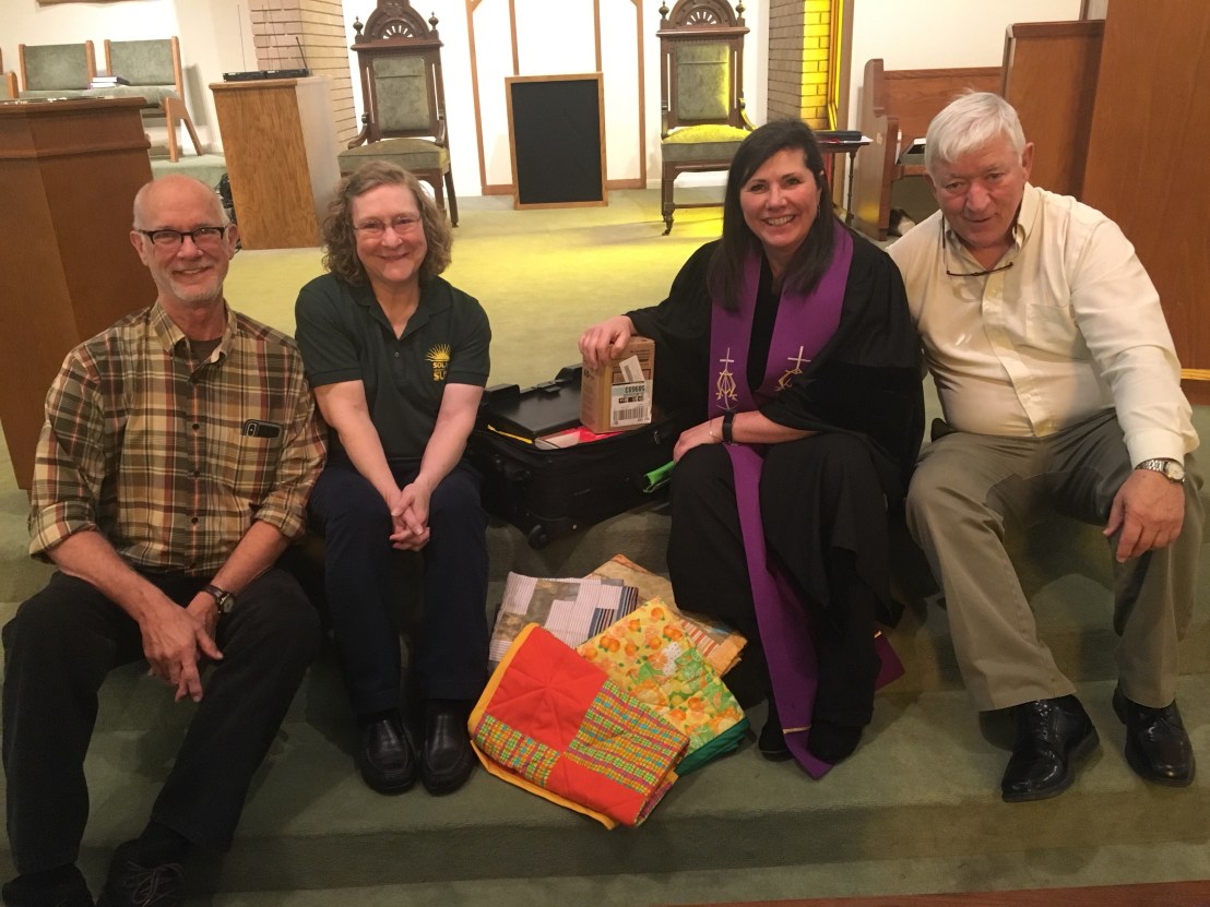We worshipped with the community in a lively and beautiful worship service. Witnessed two families presenting children who they promised to raise in the faith. And were able to give a load of t-shirts from the Broadmoor Presbyterian Church and about 20 hand-made blankets from the Presbyterian Church in Jacksonville.