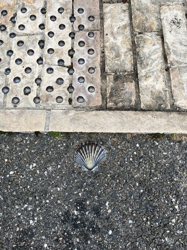 On our way out we walked out the gate and I saw the Camino Shells.