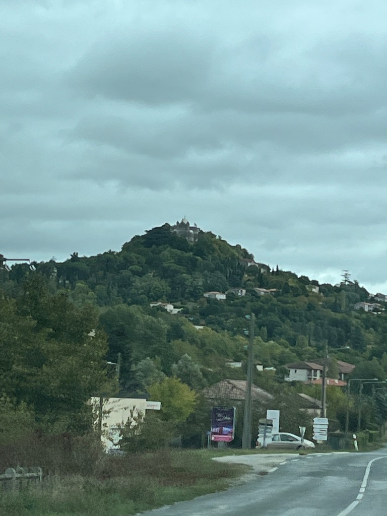 On our way back to the house we saw what looked like a castle at the top of a mountain. We decided to have a look. We drove a long way up and we came across another medieval village Penne d’Agenais. And another sign for the Camino de Santiago de Compostela.