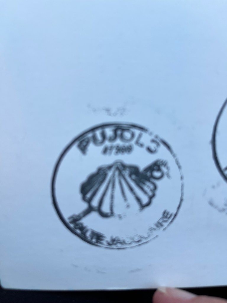Then we headed out to see Pujols another medieval village as well as one of the most beautiful villages. It is very small, quaint and beautiful. We visited the church and even collected a camino stamp. Then we wandered around the village. It was so small it didn’t take long. So we sat down at a cafe for a drink and a snack.
