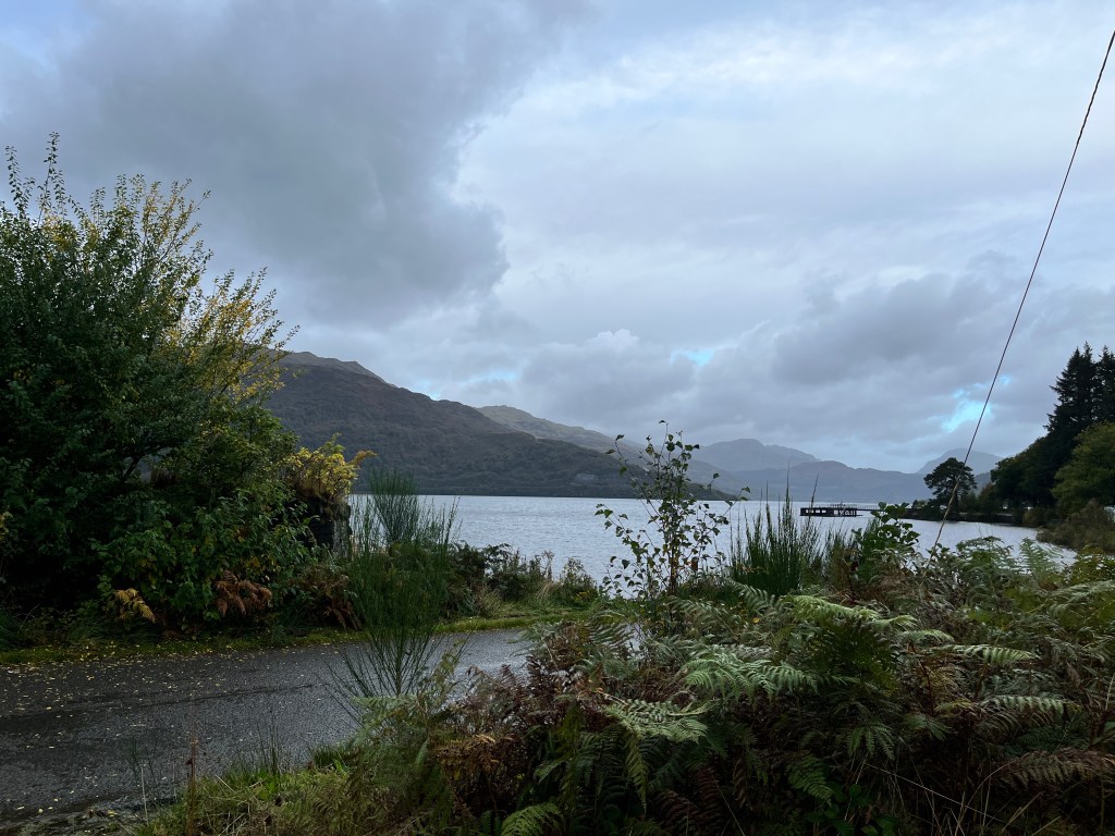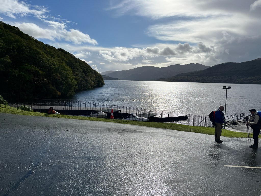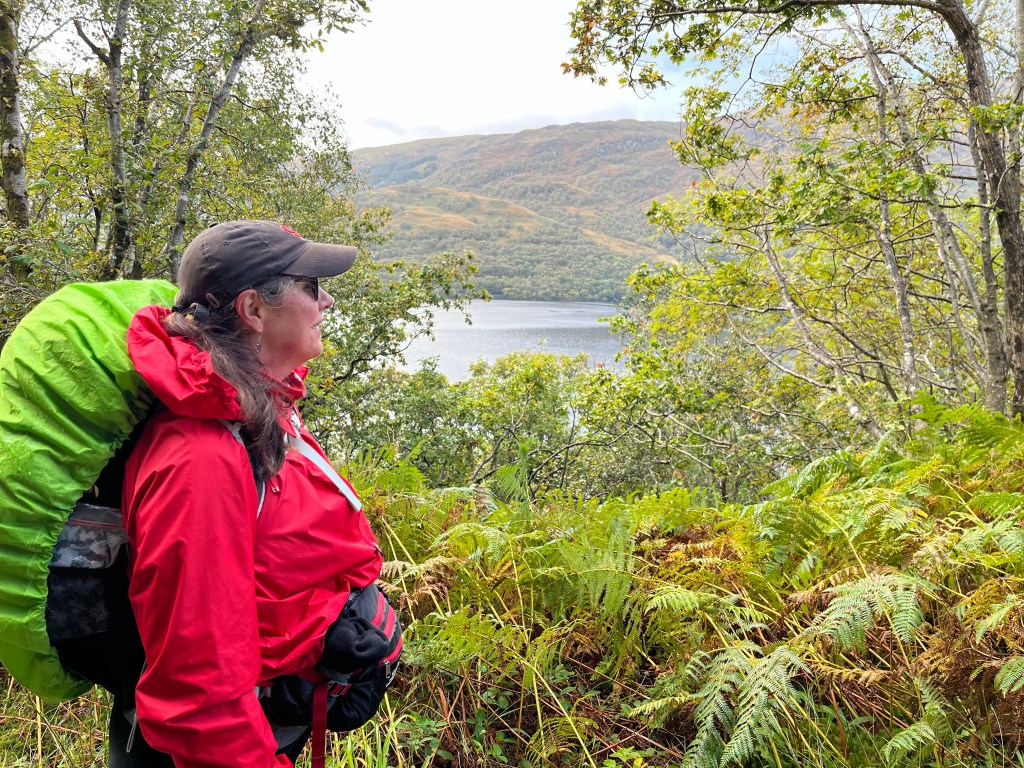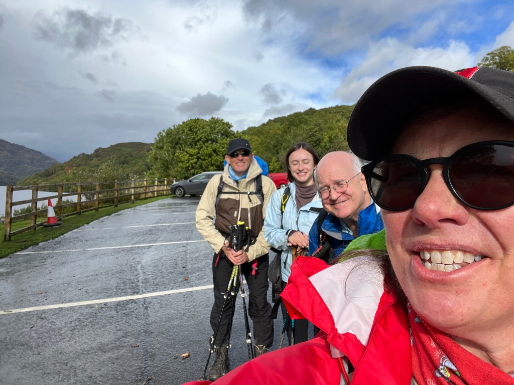 The sounds today were amazing. Not just today. We heard the wind whistling through the trees, blowing on our faces and through our clothes. We heard the lake lapping against the shore. We have walked all along Loch Lomond. I have driven beside this loch many times and thought it was endless. I never dreamed I would walk the length of it. We heard the waterfalls. Wow so many waterfalls to hear (and to cross over 😬)