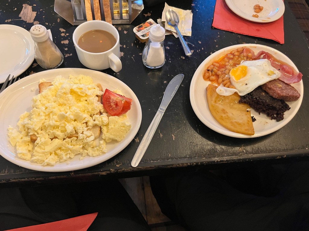 We had our breakfast at the Drover’s Inn where we stayed last night. Their boasts: the inn is haunted (we stayed across the street in the lodge), Rob Roy stayed here, the best pub in 1705 😂😂😂 I think the Scots are known for simple but good food. Their breakfasts are amazing. Noël has had a Scottish breakfast every morning (one was vegetarian because we shared it). And he was so excited about the black pudding this morning. 🤮