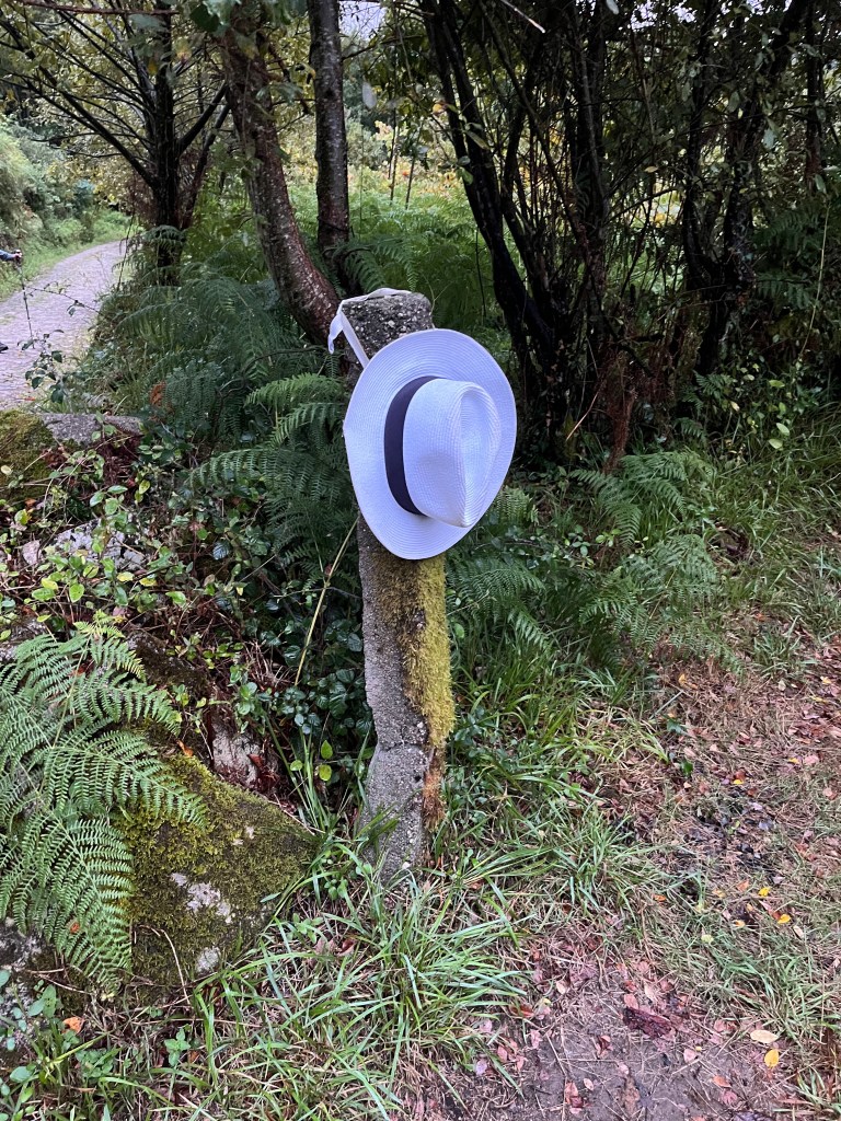 Noël and I looked at each other and said, “don’t we have an extra hat!” We looked but we didn’t. The next day as we headed out of Rubiaes there was a white hat on a pole and Noël said let’s take it for Nuno as a joke. Noël sent him a message to ask where he was on the camino and he said that he had walked 40 kms that day. So we would not see him again. And fortunately he had found a hat.