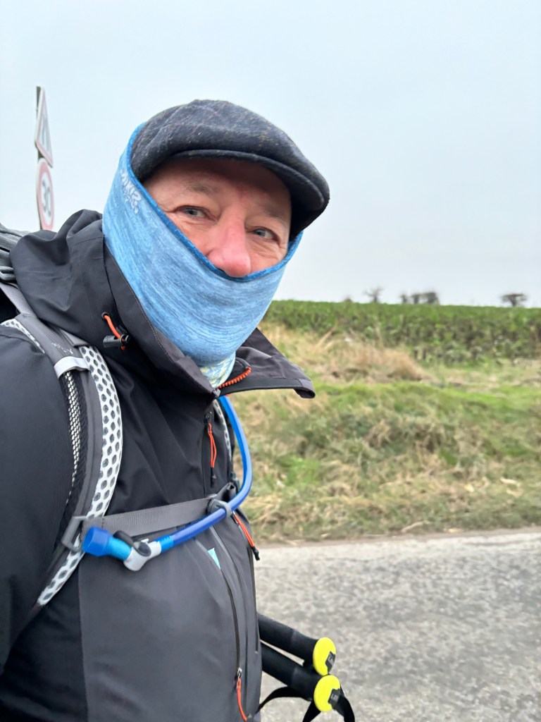 When we started getting ready this morning we couldn’t find two socks. Well we finally found them and a pair of underwear still in the washing machine. The socks we had dried were two left socks so we needed a pair. Fortunately there was a a high power hair dryer. We got them dry. And we started our walking.