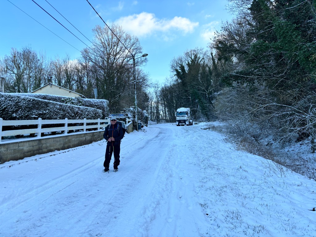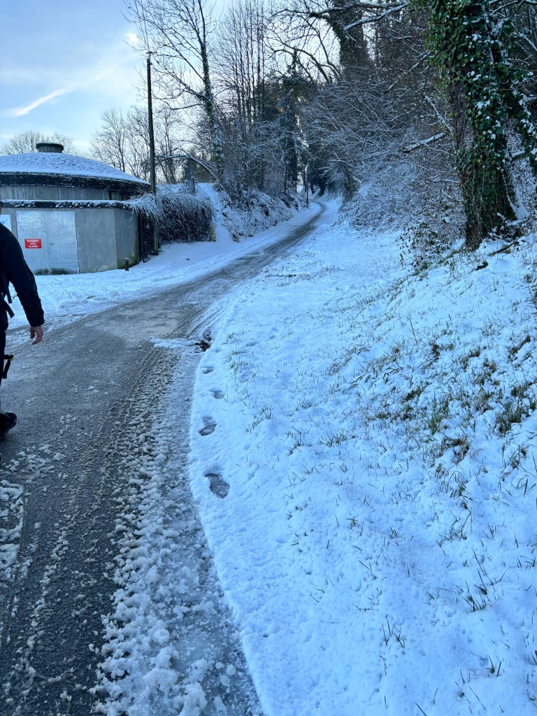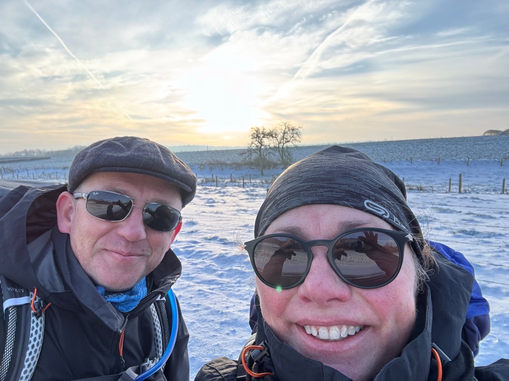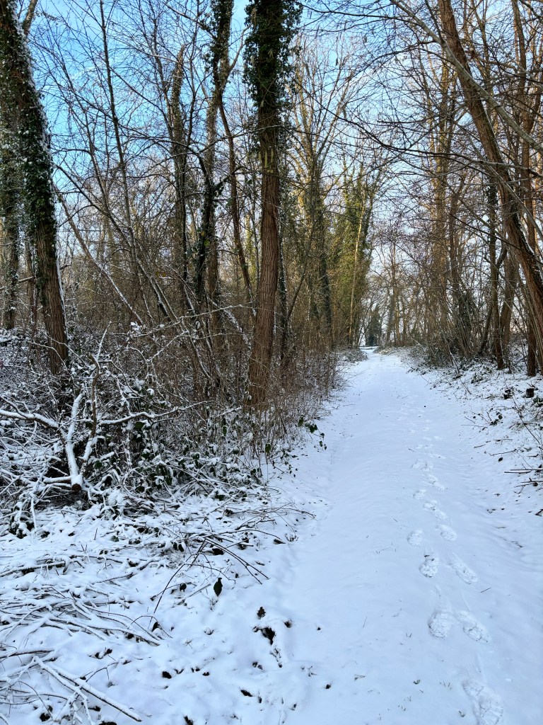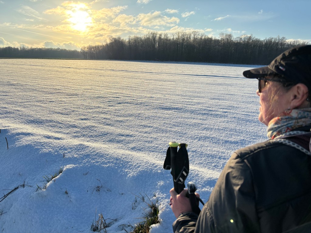 We stepped outside to ice covered snow and we were ready to go. Shoes weren’t quite dry but good enough. We had our ice grippers on and away we went. It was really beautiful!!