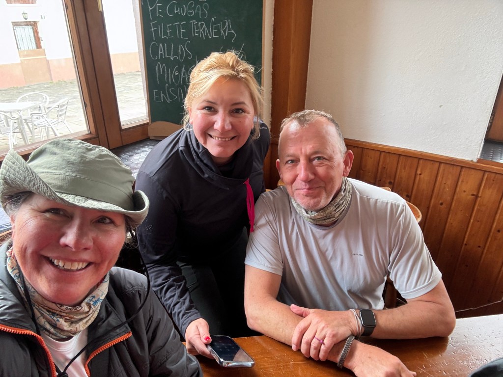 Last night we stayed in the monastery in Roncesvalles which is familiar to us. After the deluge we gave all our clothes to put in dryer which wasn’t ready before dinner. We had clothes to wear but it was interesting…