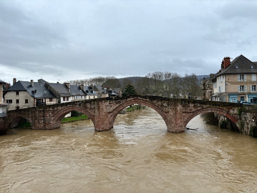 We spent the morning repacking and finding items that we could send back home, mostly gifts that we bought. Then head to the post office where we crossed the bridge over the Lot River and noticed it was even higher than yesterday.