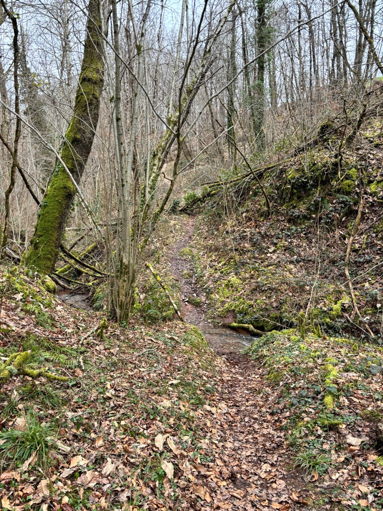 We had to take a different path because of the flooding of the Lot River. It took us on asphalt having to dodge traffic, then on to a forest path and straight up. We went up 150 meters/492 feet in 1km/.6 miles. It was tough. But we did it. Bonus was that we got to see a St Jacques Chapel.