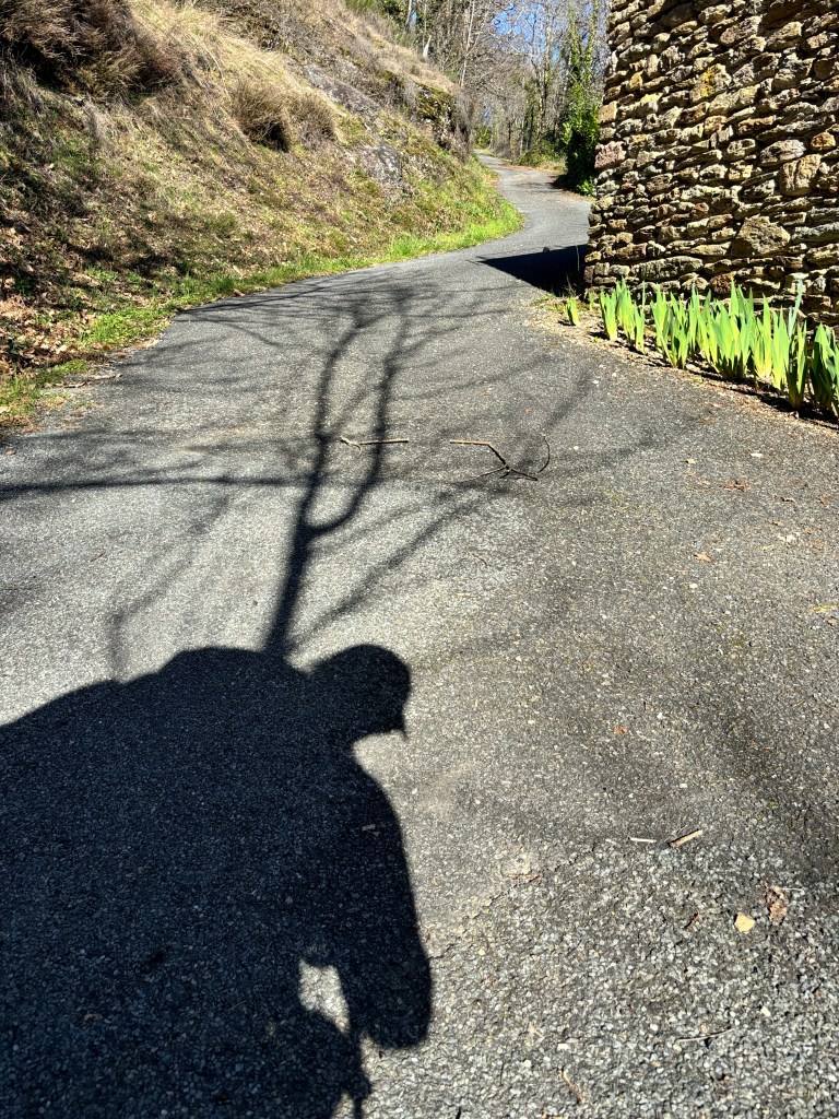 Interestingly we both got photos and experiences we wanted. And the time apart was invigorating because when we reunited we were buzzing with conversations!! As we walked along the road a car came up next to us and slowed down to tell us there was a small path so we didn’t have to walk the road. Noël said yes but it’s only 25 cms/10 inches. After a couple of cars past fast we decided to use it.