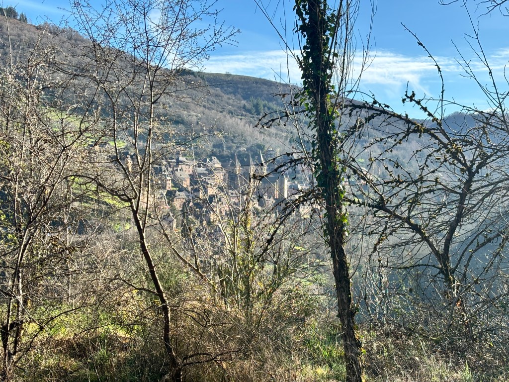 We had a lot of ups and downs today. We saw beautiful sights and met some new pilgrims as well as connecting with some we had already met. We also said goodbye to several who were only going as far as Conques.