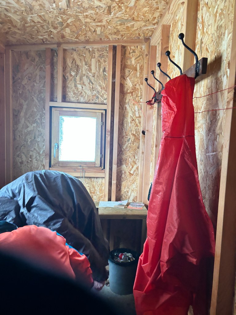 Our friends didn’t start arriving until 5 and the others around 7. They went a different way and started a bit later so slightly better weather. Still a grueling day. I was super tired and feel asleep by 8:30. oh and it snowed overnight!! But it was fine!