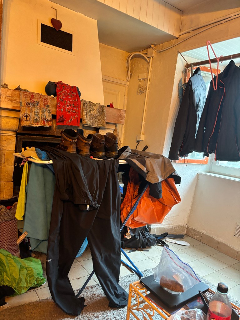 Yesterday was hard. I’ve experienced some difficult days on Caminos but yesterday was probably one of the worst and challenging walking days. The weather was so challenging. The route okay. But by the time we decided to stop we had at least 2-3 kgs of extra weight because of the water. And our gloves and feet were soaked because of the rain, sleet, snow. I was beginning to feel numbness which was a bit scary.