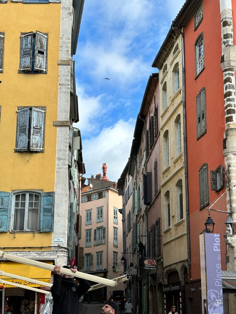 So finally after 60 days we saw 2 pilgrims and today we saw 7 more. We wondered when it would happen and it happened here in Le Puy en Velay.