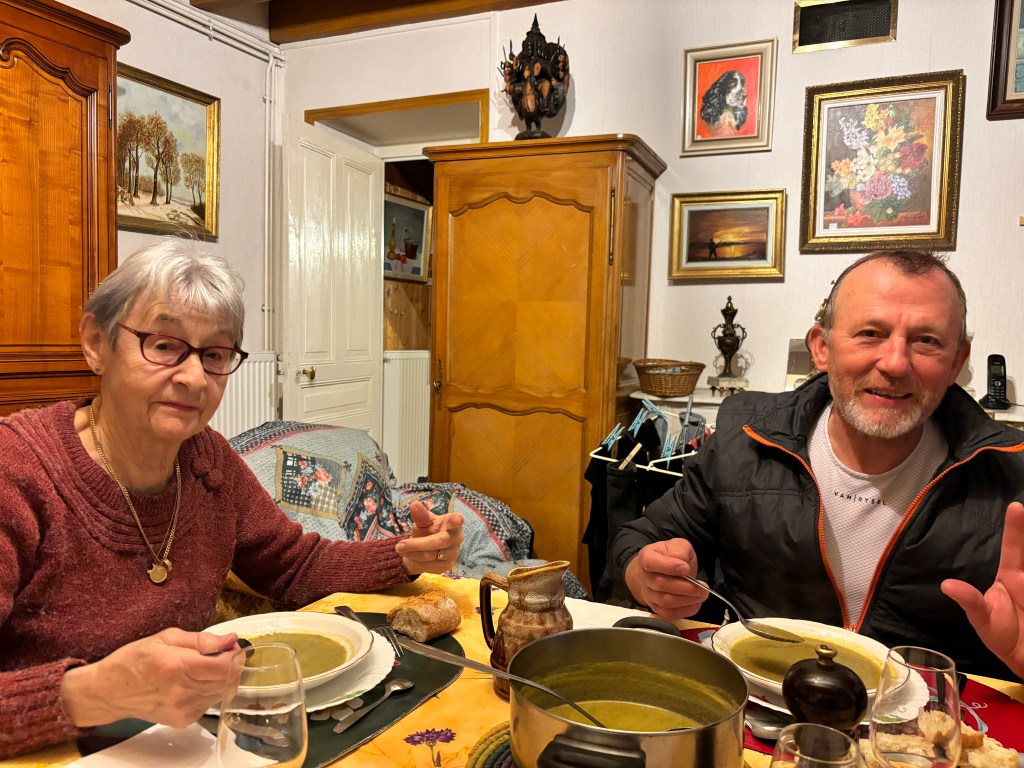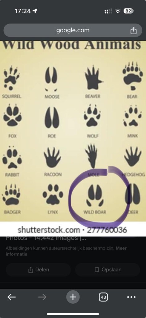 Another story. As you know we have been traversing through forests with warnings of boars, wolves and hunters. We walked through a section of woods that was called the Park of Boars (Parc de Sanglier) Noël commented that he wouldn’t mind seeing a boar at a distance. I replied, “hey open your phone to google, type in boar and see all the boars from a distance that you can. That’s as close as I want to come to a live boar!”