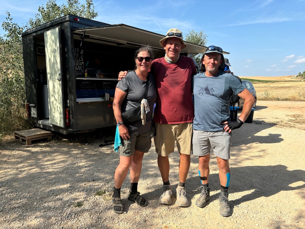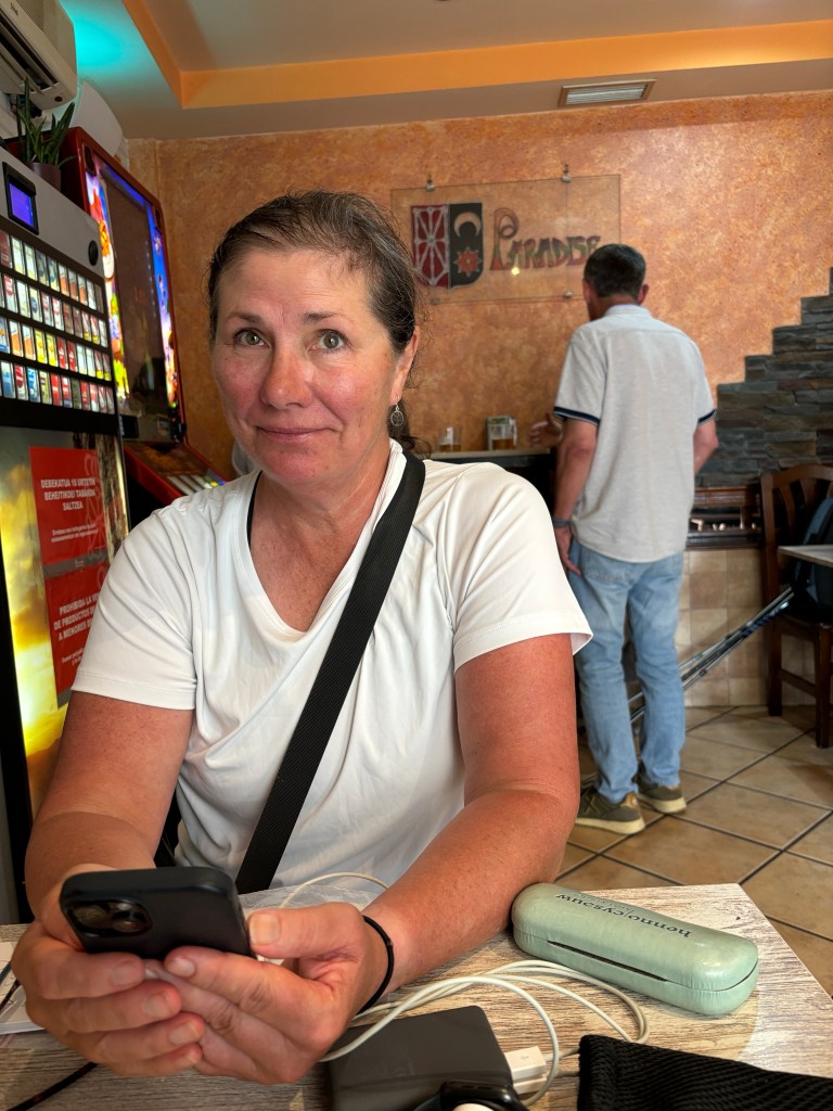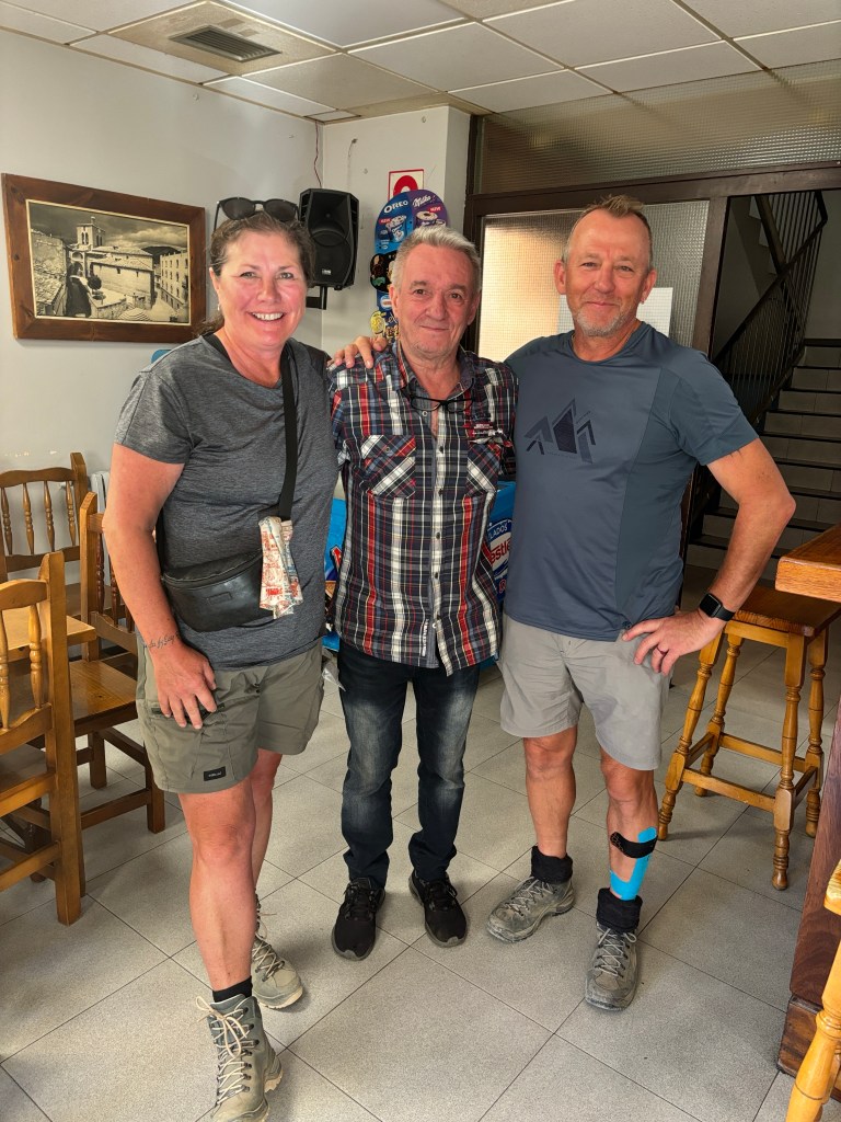 Today we met some more pilgrims that we have seen off and on since the beginning of our camino. Ron from Utah, Laurie from Washington and Gertrude from The Netherlands. We have passed them and vice versa. The other day Ron was talking as they passed us and after they were out of earshot I said he seems like a really nice guy. And I was right. Laurie and Gertrude are super nice too and we are very happy to have met them all.