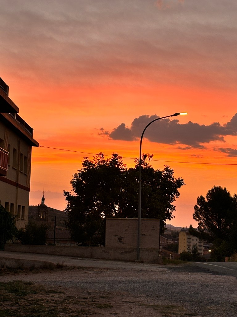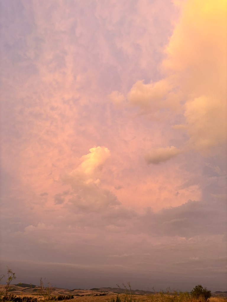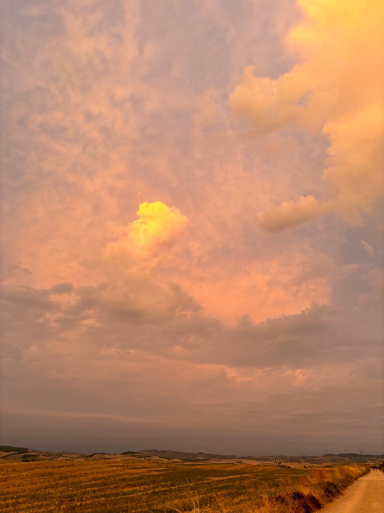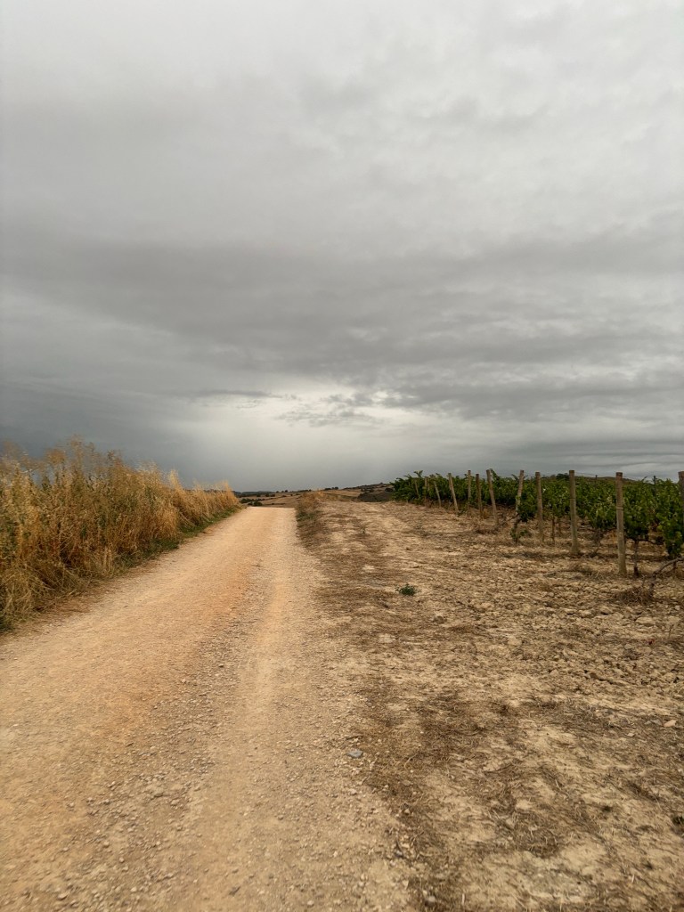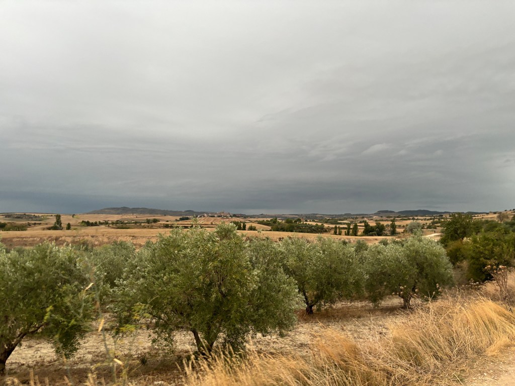 We had a small breakfast in Los Arcos which was delicious but maybe if we had skipped it we would have missed some of the weather. We walked 1 km out of Los Arcos and heard a very loud and long clap of thunder.