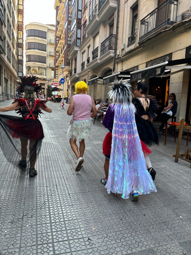 Last night’s festivities were still going on as we made our way to the bus station at 5:45. Although, I must say with much less vigor than through the night. Mostly young people finding friends, taking pees, kissing on doorsteps and the street cleaners busy at work. It’s something we have noticed in Spain after big events the clean up is immediate.