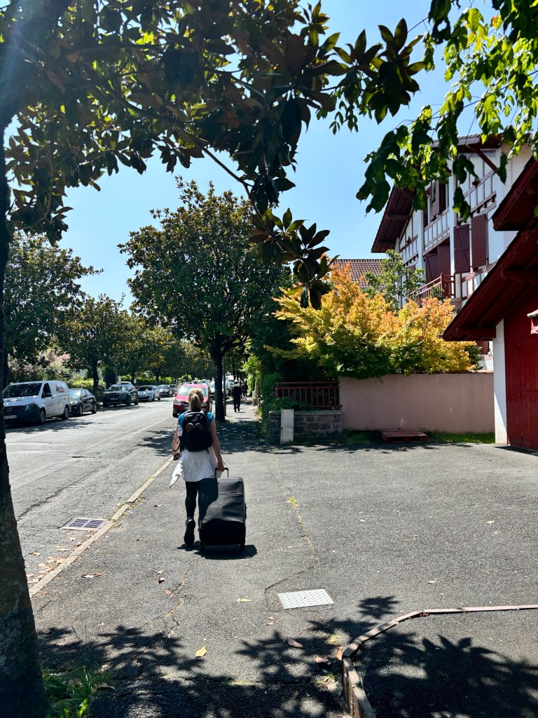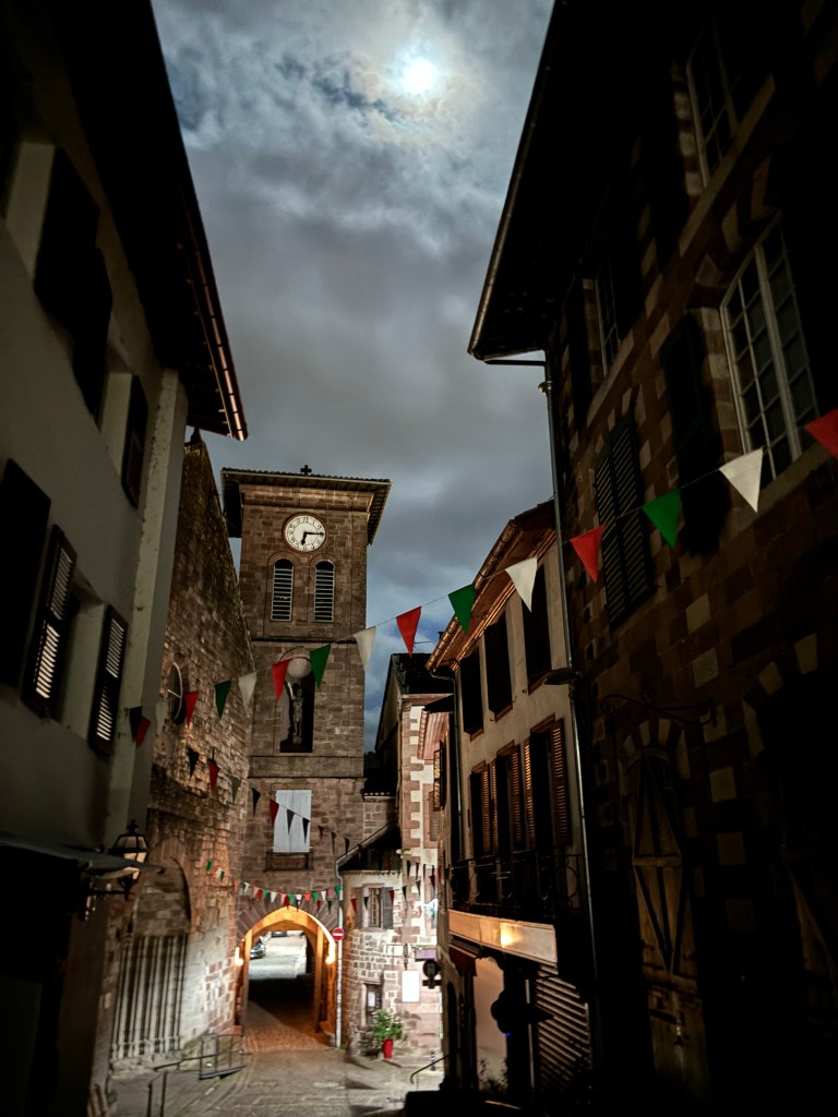 It’s interesting to me how things become familiar. I have been to St. Jean Pied de Port a number of times now. I remember the first time feeling overwhelmed, not because of going on  pilgrimage alone but because of not being able to speak French. I was excited about my pilgrimage alone. I came in by bus by way of Paris. Two other times by bus from Pamplona. The last time we walked in and now we will take the train from Bayonne. While waiting for our train we met Anders from Sweden. We sat together on the train and continued a fun conversation.