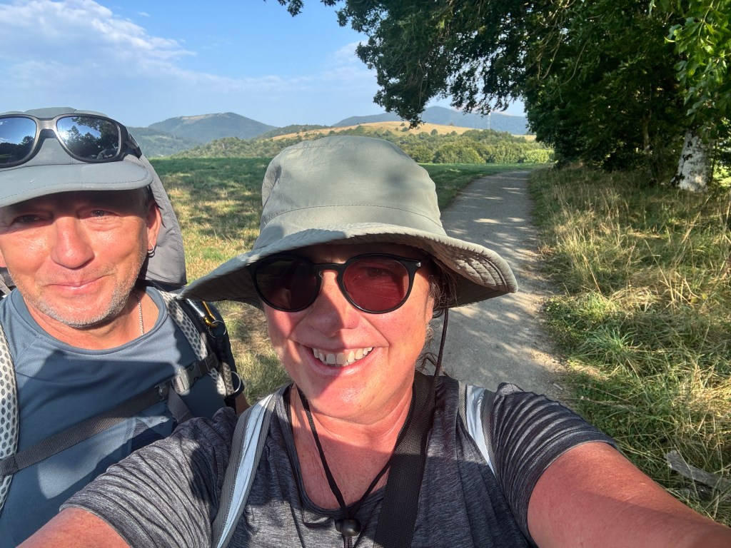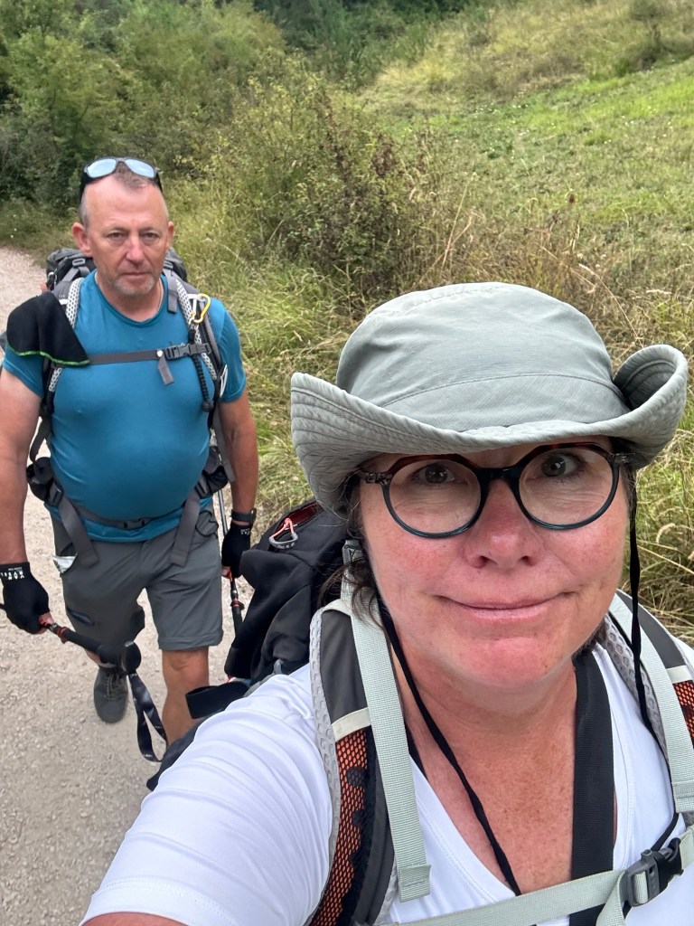 One of the other observations is seeing people helping each other. Today we heard a story from Madeline from Italy. She was struggling up a hill. Yesterday we stopped to talk to her and she explained that she had a disease in her neck that still caused her problems. She assured us she would be fine though we encouraged her to send her pack ahead.
