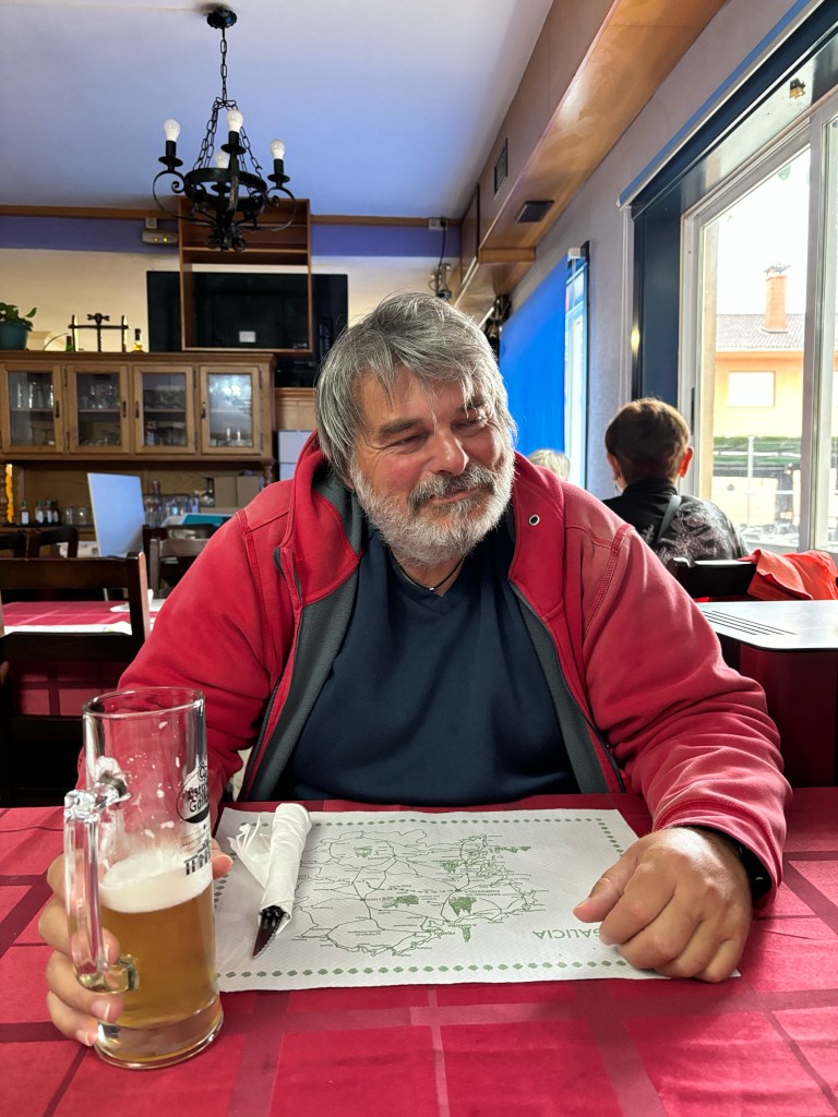 Tomorrow the weather is supposed to improve, though we heard from Mia, who is walking back to Santiago de Compostela that we will encounter two flooded areas because of all the rain. Always an adventure!! Splashing through the floods we will.