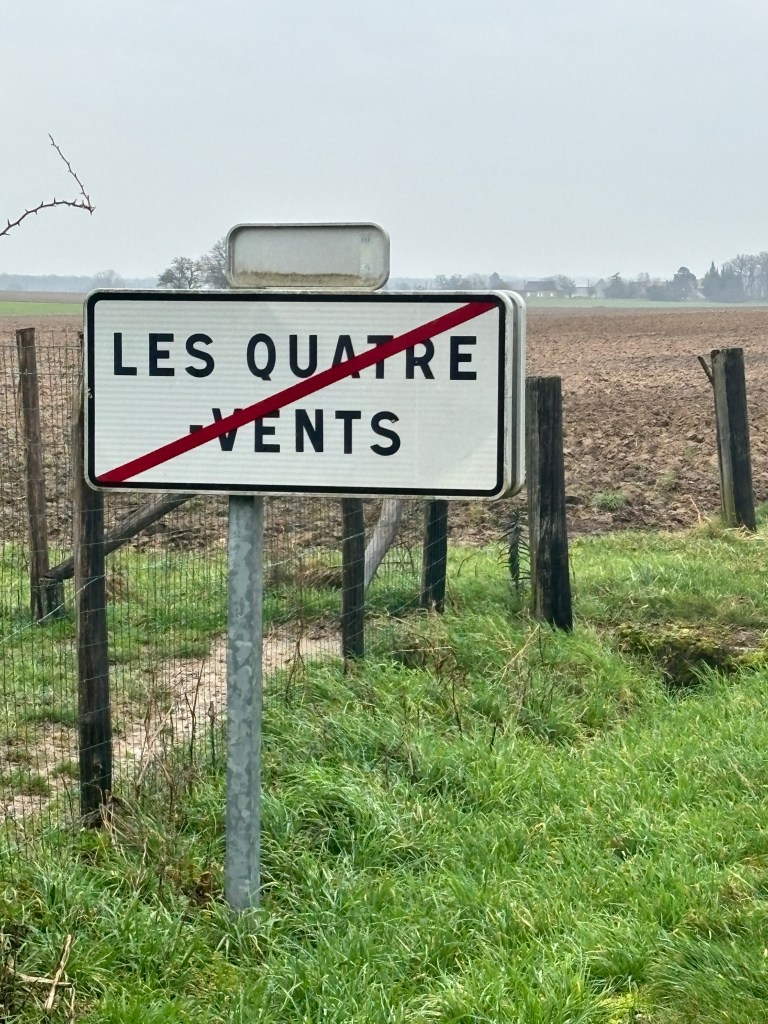 Okay I hope you find this as funny as we did…we come to a village called Les Quatre Vents (the four winds) and when we left it lets you know you have left the four winds…but they lied, still so much wind all day.