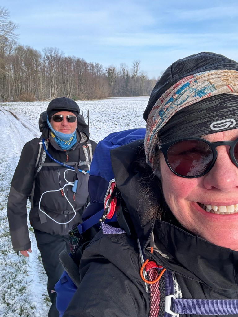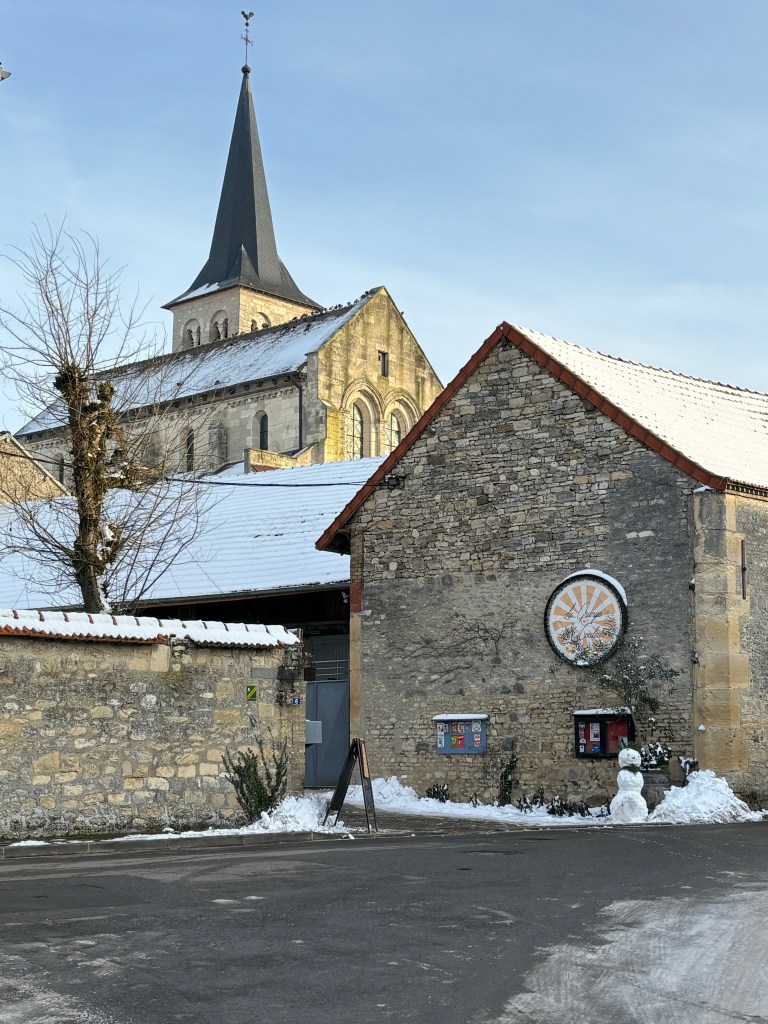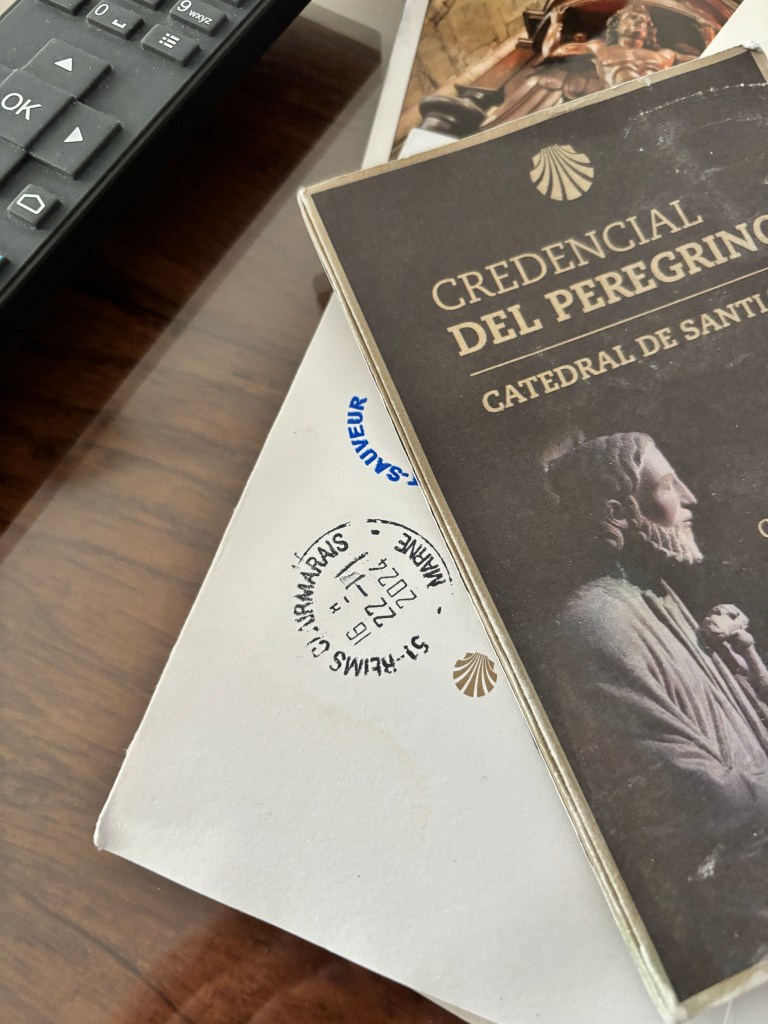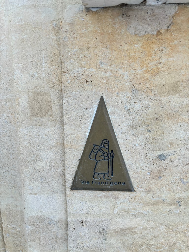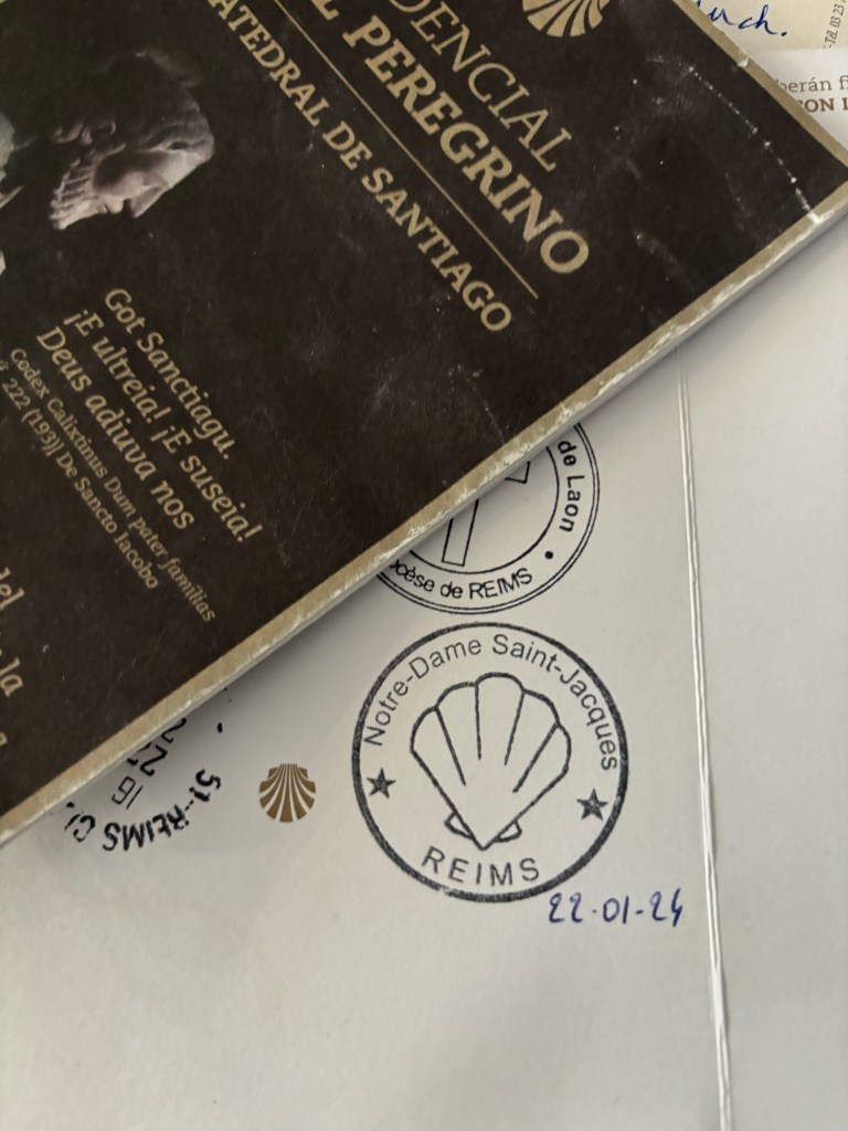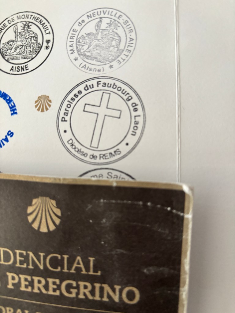 We were able to walk in, literally the first church along the Via Francigena since leaving Saint Quentin. There was obviously some sort of service going to happen the front seats had bulletins on them. A sweet woman greeted us. Noël spoke with her about possibly getting a stamp for our credential. She encouraged us to come back they were about to have a funeral. Noël told her this was the first church that has been opened since Saint Quentin. She asked for our credentials and took them to stamp. 🥹